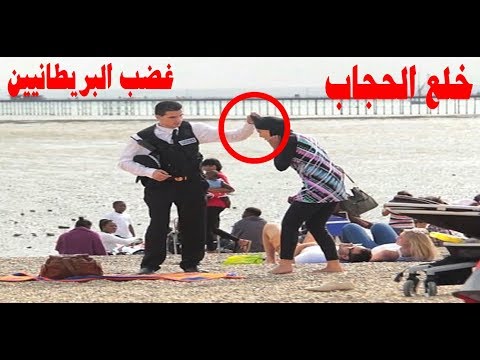 شاهد رد فعل البريطانيين مع شرطي فرنسي حاول إجبار سيدة مسلمة جميلة على خل...